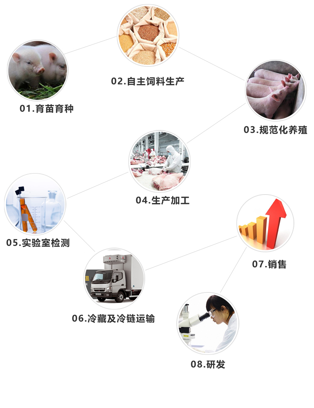 公司旗下?lián)碛小巴ㄍ~”、“通威蝦”、“魚鮮達(dá)”、“貓無刺”、“通威美鮰魚”、“蛙常在”、“春源冷鮮肉”、“新太豐鮮禽”、“通威生活”等多個(gè)知名品牌,為確保每一款產(chǎn)品的安全,通威食品多年來全力整合行業(yè)資源,在產(chǎn)業(yè)鏈上實(shí)現(xiàn)了從養(yǎng)殖、加工到銷售的全程品質(zhì)監(jiān)控。通威食品打造的中國第一條品牌魚一“通威魚”,已經(jīng)實(shí)現(xiàn)了全產(chǎn)業(yè)鏈監(jiān)控。